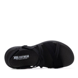 Sandalia de mujer de la marca Xti, fabricada en material textil. Modelo de pala con tira cruzada que sujeta el pie cómodamente. Cierre ajustable mediante cinta adhesiva para un calce fácil y seguro. Suela deportiva que aporta confort y estabilidad, ideal para uso diario o actividades casuales. Modelo plano, fresco y funcional. Este modelo ha obtenido el certificado vegano por la organización mundial PETA (Organización de los derechos de los animales).
