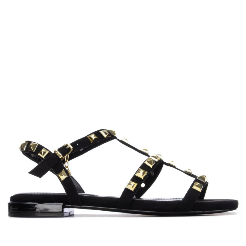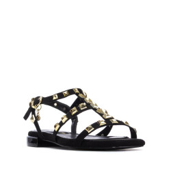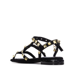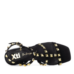 Sandalia de mujer, de la marca Xti. Fabricada en material que imita la piel, presenta un diseño elegante y actual con tiras finas decoradas con pequeñas tachas metálicas, que aportan un toque distintivo y moderno. Incorpora una pulsera al tobillo con cierre mediante hebilla para una sujeción segura y confortable. Modelo plano con suela antideslizante, ideal para el uso diario durante los meses de calor gracias a su ligereza y estilo versátil.