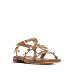 Sandalia de mujer, de la marca Xti. Fabricada en material que imita la piel, presenta un diseño elegante y actual con tiras finas decoradas con pequeñas tachas metálicas, que aportan un toque distintivo y moderno. Incorpora una pulsera al tobillo con cierre mediante hebilla para una sujeción segura y confortable. Modelo plano con suela antideslizante, ideal para el uso diario durante los meses de calor gracias a su ligereza y estilo versátil.