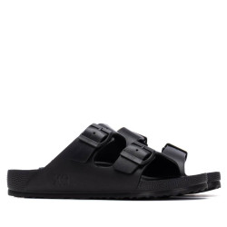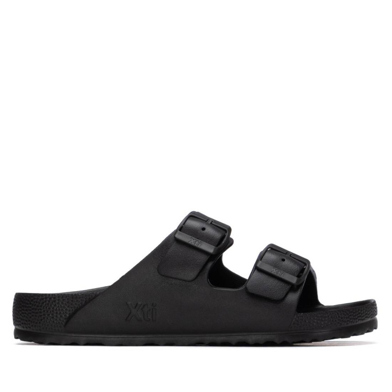 Sandalia de caballero, de la marca Xti, fabricada en goma resistente y ligera, ideal para los días de playa o piscina. Modelo con tiras paralelas que aseguran una buena sujeción al pie, decoradas con hebillas decorativas que aportan estilo al diseño. Suela plana para mayor comodidad y estabilidad al caminar sobre superficies húmedas o irregulares. Perfecta para un calzado práctico, fresco y cómodo en momentos de ocio y descanso. Este modelo ha obtenido el certificado vegano por la organización mundial PETA (Organización de los derechos de los animales).