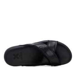 Sandalia de caballero, de la marca Xti, fabricada en material que imita la piel de alta calidad. Modelo de tiras cruzadas que ofrecen una sujeción firme y cómoda al pie. La suela es acolchada para proporcionar máximo confort durante su uso prolongado, siendo además plana para facilitar la movilidad. Ideal para un estilo casual y cómodo en el día a día. Este modelo ha obtenido el certificado vegano por la organización mundial PETA (Organización de los derechos de los animales).