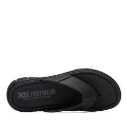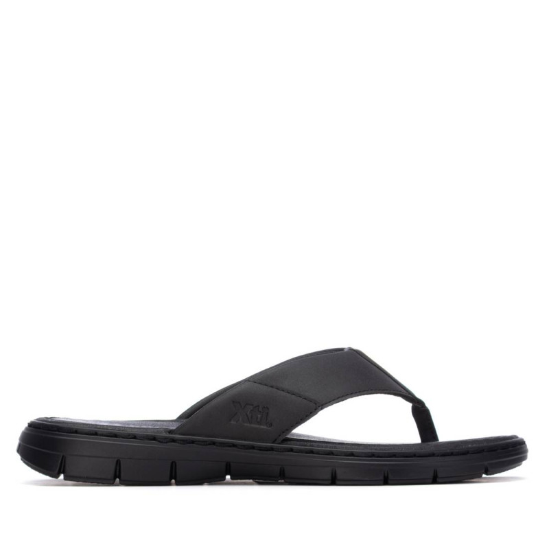 Sandalia de caballero, de la marca Xti, fabricada en material que imita la piel, diseñada para ofrecer máximo confort en su uso diario. Modelo con tira que se coloca entre los dedos para una sujeción natural y cómoda. Cuenta con una suela de estilo deportivo, ligera y flexible, que proporciona buena amortiguación y agarre en diferentes superficies. Ideal para quienes buscan un calzado cómodo y versátil para actividades casuales o de ocio. Este modelo ha obtenido el certificado vegano por la organización mundial PETA (Organización de los derechos de los animales).