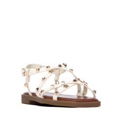 Sandalia de mujer, de la marca Xti. Fabricada en material que imita la piel, con diseño estilo romana caracterizado por múltiples tiras decoradas con tachuelas que aportan un toque moderno y sofisticado. Modelo plano, con cierre mediante hebilla al tobillo para un ajuste seguro y cómodo. Perfecta para looks veraniegos con estilo y comodidad. Cuenta con suela antideslizante, para mayor seguridad en cada paso. Este modelo ha obtenido el certificado vegano por la organización mundial PETA (Organización de los derechos de los animales).