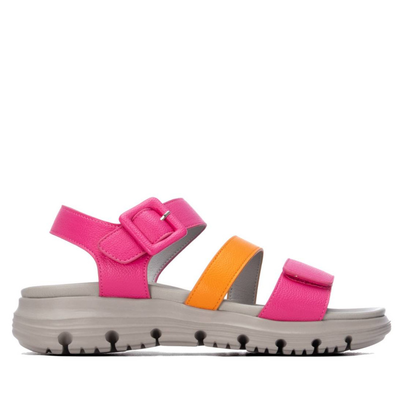 Sandalia de mujer, de la marca Xti. Fabricada en material que imita la piel, presenta un diseño práctico y cómodo con pala ajustable mediante cinta adhesiva. Incorpora una pulsera al tobillo con cierre de hebilla forrada en el mismo material, que garantiza una sujeción segura. Su suela deportiva ofrece ligereza y confort, ideal para un uso diario con estilo. Este modelo ha obtenido el certificado vegano por la organización mundial PETA (Organización de los derechos de los animales).