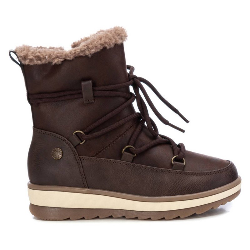 Botín de niña, de la marca Refresh. Fabricado en material que imita la piel con cálido forro de pelito ideal para los días más fríos. Cierre mediante cremallera lateral. Cordones decorativos. Tirador trasero para facilitar la puesta. Suela gruesa de goma antideslizante. Este modelo ha obtenido el certificado vegano por la organización mundial PETA (Organización de los derechos de los animales).