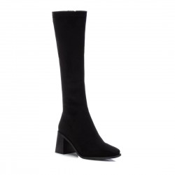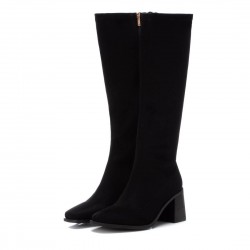 Bota de mujer, de la marca Xti. Fabricada en suave antelina. Cierre mediante cremallera lateral. Caña alta de 38 cm, de materal elástico para facilitar la puesta y el ajuste. Cómodo tacón ancho de 7 cm y punta afilada. Suela antideslizante. Este modelo ha obtenido el certificado vegano por la organización mundial PETA (Organización de los derechos de los animales).