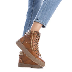 Botín deportivo de mujer, de la marca Carmela. Fabricado en piel de alta calidad. Cierre mediante cremallera lateral y cordones ajustables para mayor comodidad. Suela de goma antideslizante. Con plantilla extraíble.