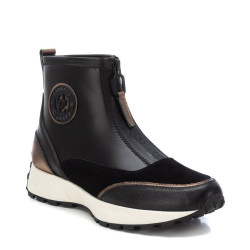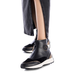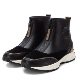 Botín de mujer, de la marca Carmela. Fabricado en piel de alta calidad combinada con otros materiales. Cierre mediante cremallera frontal. Tirador trasero para facilitar la puesta. Con plantilla extraíble.