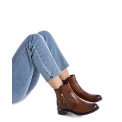 Botín de mujer, de la marca Carmela. Fabricado en piel de alta calidad. Cierre mediante cremallera lateral. Tirador trasero para facilitar la puesta. Suela antideslizante y tacón de 4 cm. Un básico para el invierno.
