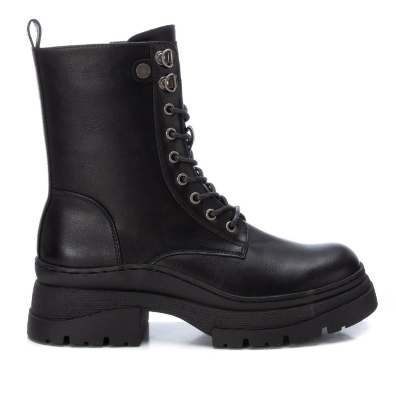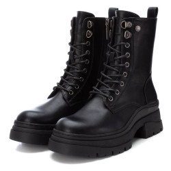 Botín de mujer, de la marca Refresh. Fabricado en un material que imita la piel. Cierre cremallera lateral y cordones ajustables. Tirador trasero para facilitar su puesta. Suela volumen antideslizante. Este modelo ha obtenido el certificado vegano por la organización mundial PETA (Organización de los derechos de los animales).