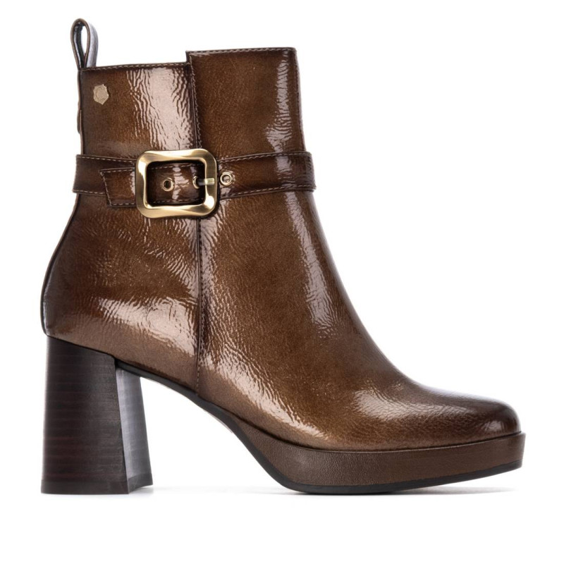 Botín de mujer, de la marca Carmela. Fabricado en piel de alta calidad. Cierre mediante interna. Tirador trasero para facilitar la puesta. Detalle lateral con hebilla. Suela antideslizante. Plantilla extraíble.