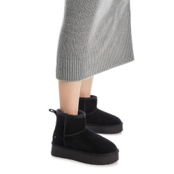 Botín de mujer, de la marca Carmela. Fabricado en un suave serraje. Estilo bota australiana. Super Calentito con pelo por dentro. Un imprescindible del invierno, no querrás quitártela. Tirador trasero para facilitar la puesta. Suela gruesa de goma antideslizante.