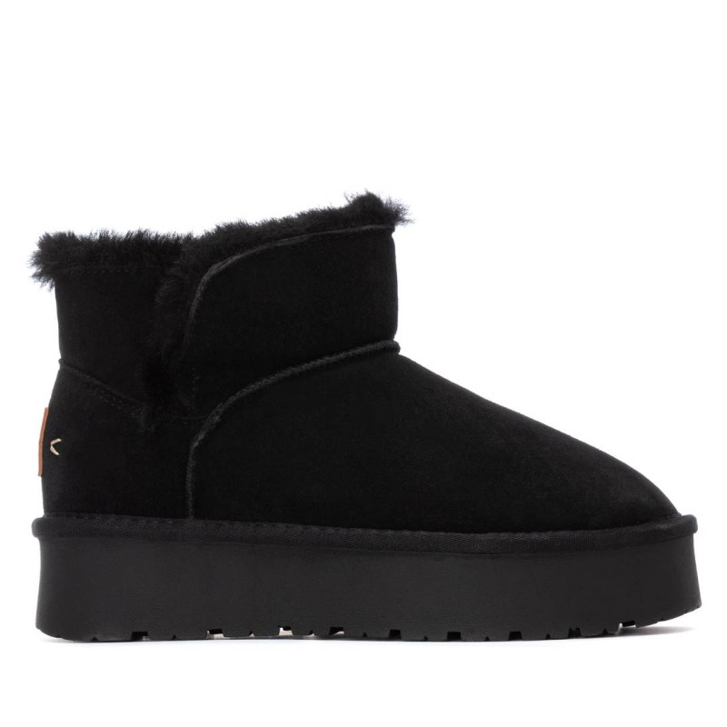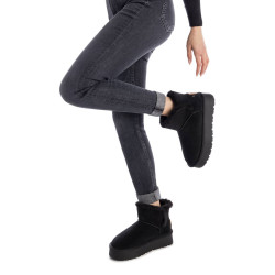 Botín de mujer, de la marca Carmela. Fabricado en un suave serraje. Super Calentito con pelo en el interior. Estilo bota australiana, un básico de cada invierno. Tirador trasero para facilitar la puesta. Suela gruesa de goma antideslizante.
