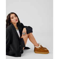 Zapatilla de mujer, de la marca Xti. Fabricado en una suave antelina. Zapatilla tipo australiana con cierre mediante cordones, con pelo calentito para esos días más fríos del invierno. Este modelo ha obtenido el certificado vegano por la organización mundial PETA (Organización de los derechos de los animales).