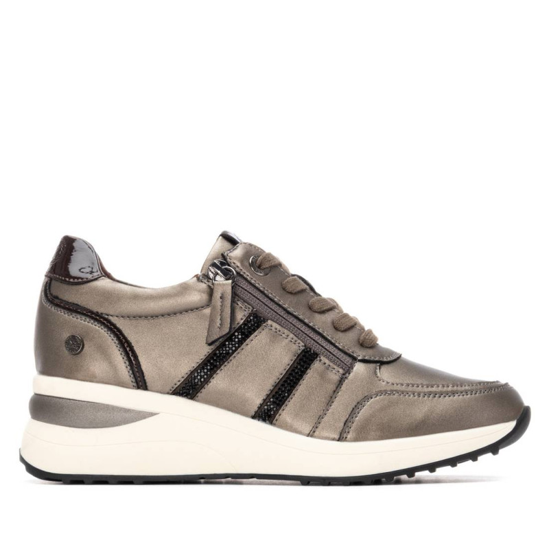 Zapatilla de mujer de la marca Xti. Fabricada en material que imita la piel. Con cierre de cremallera para una fácil y cómoda puesta. Suela con cuña de goma antideslizante. Modelo esencial básico para tu armario. Con plantilla extraíble. Este modelo ha obtenido el certificado vegano por la organización mundial PETA (Organización de los derechos de los animales).