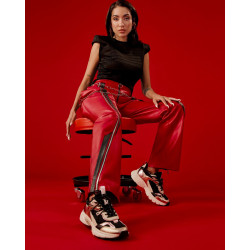 Zapatilla de mujer de la marca Xti, fabricada en material que imita la piel con un efecto metalizado que le aporta un toque brillante y moderno. Cuenta con cordones tradicionales y cuerdas elásticas, que permiten un ajuste cómodo y práctico. Ideal para quienes buscan una combinación de estilo y funcionalidad en su calzado. Suela antideslizante. Plantilla extraíble. Este modelo ha obtenido el certificado vegano por la organización mundial PETA (Organización de los derechos de los animales).