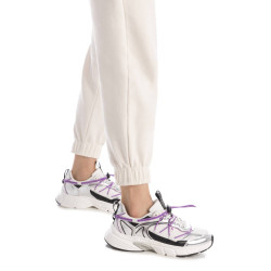 Zapatilla de mujer de la marca Xti, fabricada en material que imita la piel con un efecto metalizado que le aporta un toque brillante y moderno. Cuenta con cordones tradicionales y cuerdas elásticas, que permiten un ajuste cómodo y práctico. Ideal para quienes buscan una combinación de estilo y funcionalidad en su calzado. Suela antideslizante. Plantilla extraíble. Este modelo ha obtenido el certificado vegano por la organización mundial PETA (Organización de los derechos de los animales).