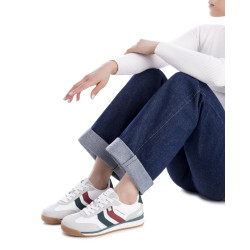 zapatilla de mujer de la marca Xti, fabricada en suave material textil con bandas decorativas en el lateral, que le brindan un toque moderno y estilizado. Con suela plana, ofrece gran comodidad, y los cordones permiten un ajuste personalizado. Ideal para un look casual y cómodo en el día a día. Con plantilla extraíble. Este modelo ha obtenido el certificado vegano por la organización mundial PETA (Organización de los derechos de los animales).