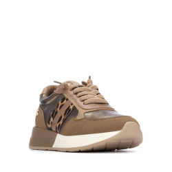 Zapatilla de mujer de la marca Xti, fabricada en material que imita el serraje combinado con material textil metalizado que le da un toque brillante y moderno. Suela deportiva moderna que garantiza comodidad y soporte, y detalles en el lateral del modelo con efecto leopardo, añadiendo un estilo audaz y elegante. Ideal para quienes buscan un diseño versátil y con carácter. Con plantilla extraíble. Este modelo ha obtenido el certificado vegano por la organización mundial PETA (Organización de los derechos de los animales).
