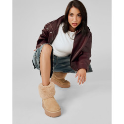 Botín de mujer, de la marca Xti. Fabricado en antelina con suave pelo en la parte superior. Tirador trasero para facilitar la puesta. Un modelo en tendencia ideal tanto para la calle como para casa. Doble piso con suela antideslizante. Este modelo ha obtenido el certificado vegano por la organización mundial PETA (Organización de los derechos de los animales).