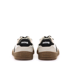 Zapatillas barefoot de color blanco con detalles en negro y beige para mujer, modelo Free Alask de la marca Mtng. Su diseño de estilo casual urbano combina diferentes texturas y un patrón bicolor que le da un aspecto dinámico. Incluye suela en tono caramelo y una lengüeta dentada que aporta un toque original. Con cordones en dos colores, permite variar el estilo según el gusto. Diseñadas y desarrolladas especialmente en colaboración con el Dr. Juanjo López, traumatólogo deportivo, para respetar el desarrollo natural del pie. Se trata de un calzado minimalista que gracias a su puntera ancha, suela totalmente plana (cero drop) y flexibilidad, mejora la anatomía del pie y favorece una mejor posición del mismo. Se vende con una plantilla de transición para hacer el cambio de calzado convencional a minimalista de manera progresiva. Con certificado VEGANO sellado por INESCOP, el cual garantiza que la naturaleza química principal del material no se corresponde con fibras de origen animal.