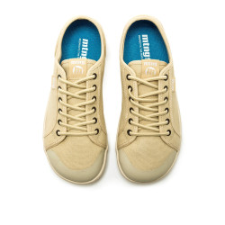 Zapatillas barefoot de color vainilla para mujer, modelo Free Aria de la marca mtng. El tono suave es ideal para quienes buscan un look fresco y actual. Su diseño en lona con puntera beige aporta un acabado natural. Diseñadas y desarrolladas especialmente en colaboración con el Dr. Juanjo López, traumatólogo deportivo, para respetar el desarrollo natural del pie. Se trata de un calzado minimalista que gracias a su puntera ancha, suela totalmente plana (cero drop) y flexibilidad, mejora la anatomía del pie y favorece una mejor posición del mismo. Se vende con una plantilla de transición para hacer el cambio de calzado convencional a minimalista de manera progresiva. Con certificado VEGANO sellado por INESCOP, el cual garantiza que la naturaleza química principal del material no se corresponde con fibras de origen animal.