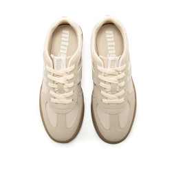 Zapatillas de color rosa claro para mujer, modelo Roy de la marca Mtng. Con una silueta clásica y detalles en blanco roto, este diseño destaca por su versatilidad y acabado retro. La franja lateral con logo bordado, las bandas plateadas y la suela tipo cupsole en tono caramelo aportan un toque vintage ideal para looks casuales. La combinación de texturas y el acolchado interior hacen que se adapten fácilmente a distintos estilos sin perder personalidad. Con certificado VEGANO sellado por INESCOP, el cual garantiza que la naturaleza química principal del material no se corresponde con fibras de origen animal.