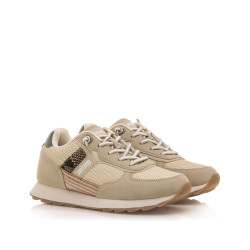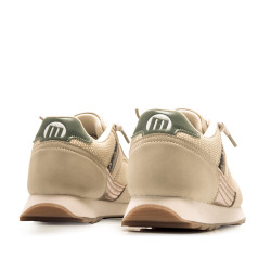 Zapatillas de color beige para mujer, modelo Joggo Sai de Mtng, de estilo deportivo casual. Destaca por el talón en tono verde que aporta contraste, el panel lateral metalizado en color bronce que suma un toque llamativo y el estampado de serpiente marrón que refuerza su estética atrevida. La combinación de texturas, junto con los cordones tubulares y la suela dentada de color caramelo, la convierten en una opción original y cómoda para looks urbanos con personalidad. Incorporan una plantilla de 4 mm con tecnología Starfit, estas zapatillas ofrecen una pisada suave y cómoda. Su espuma Comfort Foam aporta un acolchado extra, ideal para disfrutar de un confort prolongado en cada uso.