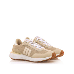 Zapatilla de color arena para mujer, modelo Zinc de mtng, estilo retro running. Destaca por su suela tipo track en tono caramelo con tacos sutiles de punta a talón que mejoran el agarre y añaden carácter. La combinación de paneles lisos y malla aporta profundidad al diseño, mientras que el logo lateral en relieve mantiene el estilo clásico de la marca. Incorporan una plantilla extraíble con tecnología Starfit y diseño termoconformado, que se adapta perfectamente al contorno del pie para ofrecer un soporte óptimo. Gracias a la espuma Comfort Foam, garantizan una amortiguación excepcional y comodidad durante todo el día.