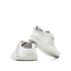 Zapatillas casual de color blanco para bebé de la marca Mtng, modelo Free baby. Este modelo destaca por su diseño de piel, perfecto para ofrecer comodidad y resistencia en los primeros pasos de los pequeños. Incluye cierre adhesivo combinado con cordones elásticos que facilita su ajuste y asegura un calce firme. Con detalles en malva en el talón y un logo lateral, estos zapatos aportan un toque moderno y funcional. Diseñada y desarrollada especialmente en colaboración con el Dr. Juanjo López, traumatólogo deportivo e infantil, para respetar el desarrollo natural del pie de los niños. Gracias a su puntera ancha permite el libre movimiento de los dedos dentro del zapato. Su suela tiene 3 mm de grosor y con zero drop (totalmente plana) respeta el natural desarrollo del pie del pequeño y sus elementos flexibles y torsionables hace que el pie del niño no esté encorsetado por la estructura del zapato. Las plantillas extraíbles facilitan comprobar si la talla del calzado es la correcta para tu hijo. Además, su fácil apertura facilita que el niño pueda descalzarse y calzarse de forma autónoma. Acompaña los primeros pasos de tu bebé con mtng.