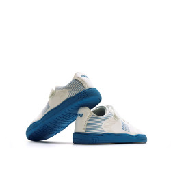 Zapatilla barefoot multideporte de color blanco y azul para niño, modelo Free de Mtng. Creada junto al Dr. Juanjo López, traumatólogo deportivo e infantil, está pensada para acompañar el crecimiento natural del pie. Su puntera ancha y reforzada protege frente al desgaste y ofrece libertad de movimiento a los dedos, mientras que los materiales resistentes aseguran durabilidad en juegos y entrenamientos. El cierre adherente con cosido reforzado permite un ajuste seguro y sencillo de manejar por los más pequeños, favoreciendo su autonomía. Con plantillas extraíbles para comprobar fácilmente la talla, es un calzado ligero, cómodo y diseñado para moverse sin límites.