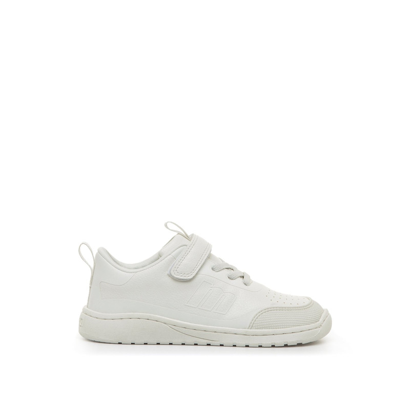 Zapatillas barefoot de color blanco para niños de la marca Mtng, modelo Free. Incorpora un sistema de cierre con cordones y tira adhesiva. Su diseño lavable combina una base lisa con perforaciones en el empeine para mayor transpirabilidad, tiradores trasero y en lengüeta para facilitar el calce, y una puntera reforzada con textura. Diseñado y desarrollado especialmente en colaboración con el Dr. Juanjo López, traumatólogo deportivo e infantil, para respetar el desarrollo natural del pie del niño y la niña. Gracias a su puntera ancha permite el libre movimiento de los dedos dentro del zapato. Las plantillas extraíbles facilitan comprobar si la talla del calzado es la correcta para tu hijo. Además, su fácil apertura facilita que el niño pueda descalzarse y calzarse de forma autónoma. Con certificado VEGANO sellado por INESCOP, el cual garantiza que la naturaleza química principal del material no se corresponde con fibras de origen animal.