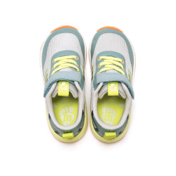 Zapatilla barefoot de color gris con detalles en verde marino, amarillo flúor y naranja de la marca Mtng, modelo Free. Su diseño lavable combina tejido de rejilla con refuerzos en puntera y talón para mayor durabilidad. Incorpora cordones elásticos y cierre adhesivo que facilita el calce, mientras que la lengüeta y talonera con tirador ayudan a ponerlos con autonomía. Diseñado y desarrollado especialmente en colaboración con el Dr. Juanjo López, traumatólogo deportivo e infantil, para respetar el desarrollo natural del pie del niño y la niña. Gracias a su puntera ancha permite el libre movimiento de los dedos dentro del zapato. Las plantillas extraíbles facilitan comprobar si la talla del calzado es la correcta para tu hijo. Con certificado VEGANO sellado por INESCOP, el cual garantiza que la naturaleza química principal del material no se corresponde con fibras de origen animal.