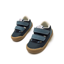 Zapatillas de color azul marino para bebé de la marca Mtng, modelo Free baby diseñados con malla perforada y detalles en material liso. Este modelo combina un diseño moderno con aperturas laterales, ofreciendo transpirabilidad y comodidad para el uso diario. El cierre doble adhesivo asegura un ajuste firme y práctico. Con certificado VEGANO sellado por INESCOP, el cual garantiza que la naturaleza química principal del material no se corresponde con fibras de origen animal. Diseñada y desarrollada especialmente en colaboración con el Dr. Juanjo López, traumatólogo deportivo e infantil, para respetar el desarrollo natural del pie de los niños. Gracias a su puntera ancha permite el libre movimiento de los dedos dentro del zapato. Su suela tiene 3 mm de grosor y con zero drop (totalmente plana) respeta el natural desarrollo del pie del pequeño y sus elementos flexibles y torsionables hace que el pie del niño no esté encorsetado por la estructura del zapato. Las plantillas extraíbles facilitan comprobar si la talla del calzado es la correcta para tu hijo. Además, su fácil apertura facilita que el niño pueda descalzarse y calzarse de forma autónoma. Acompaña los primeros pasos de tu bebé con mtng.