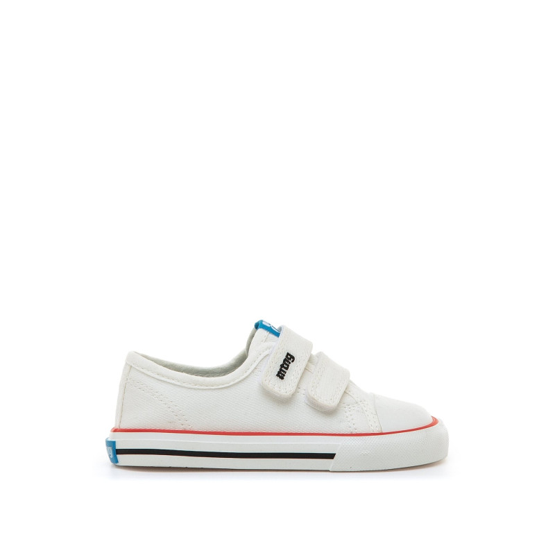 Zapatillas barefoot de color blanco para niños, modelo Free de la marca Mtng, estilo casual. Su diseño sencillo con cierre doble adhesivo aporta comodidad. Los detalles en azul, rojo y negro le dan un toque deportivo y divertido. Diseñadas y desarrolladas especialmente en colaboración con el Dr. Juanjo López, traumatólogo deportivo e infantil, para respetar el desarrollo natural del pie del niño y la niña. Gracias a su puntera ancha permite el libre movimiento de los dedos dentro del zapato. Las plantillas extraíbles facilitan comprobar si la talla del calzado es la correcta para tu hijo. Además, su fácil apertura facilita que el niño pueda descalzarse y calzarse de forma autónoma. Fabricado con un 60% de algodón reciclado post consumo y un 40% de algodón convencional. Con certificado VEGANO sellado por INESCOP, el cual garantiza que la naturaleza química principal del material no se corresponde con fibras de origen animal.