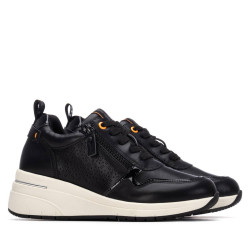 Zapatilla de mujer, de la marca Refresh. Fabricada en material que imita a la piel con troquel decorativo en el lateral. Cierre de cremallera lateral con cordón regulable para un mejor ajuste. Tirador trasero. Piso tipo cuña de goma. Este modelo ha obtenido el certificado vegano por la organización mundial PETA (Organización de los derechos de los animales).