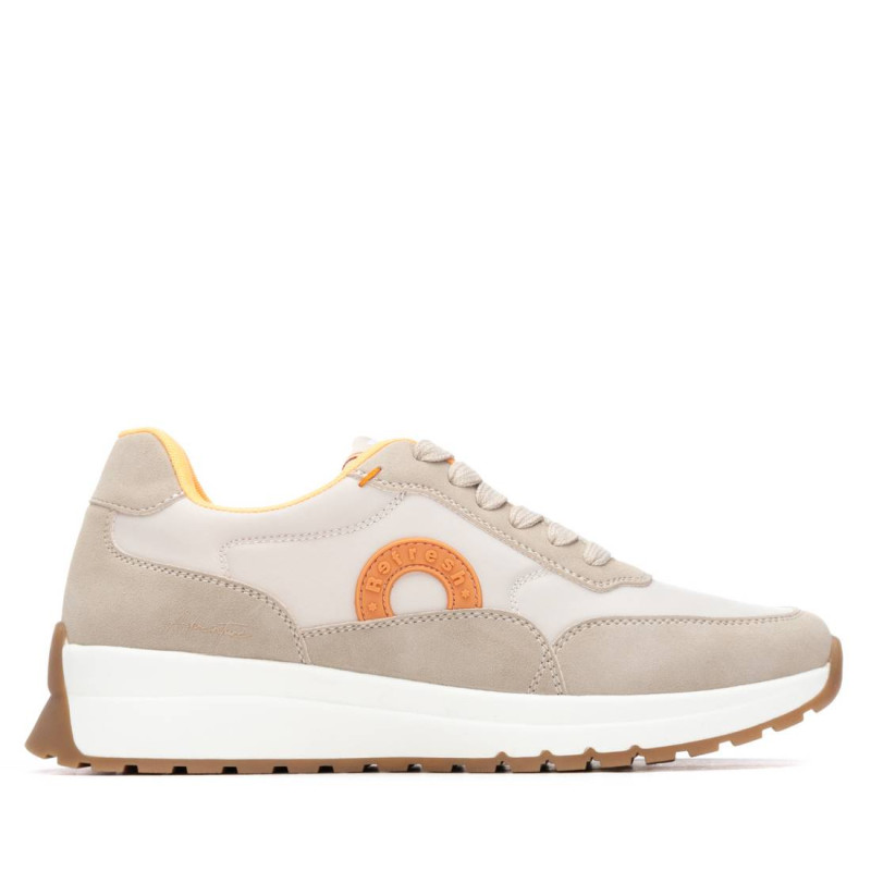 Zapatilla de mujer, de la marca Refresh. Fabricada en material que imita a la piel. Cierre mediante cordones regulables. Piso volumen con suela de goma antideslizante. Este modelo ha obtenido el certificado vegano por la organización mundial PETA (Organización de los derechos de los animales).