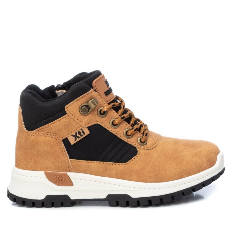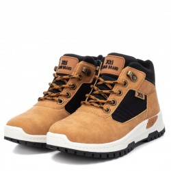 Botín de niño, de la marca Xti Kids. Fabricado en material que imita a la piel combinado con textil. Cierre mediante cremallera lateral y cordones ajustables. Botín montañero para acompañar a tu pequeño en todas sus aventuras. Suela de goma antideslizante. Este modelo ha obtenido el certificado vegano por la organización mundial PETA (Organización de los derechos de los animales).