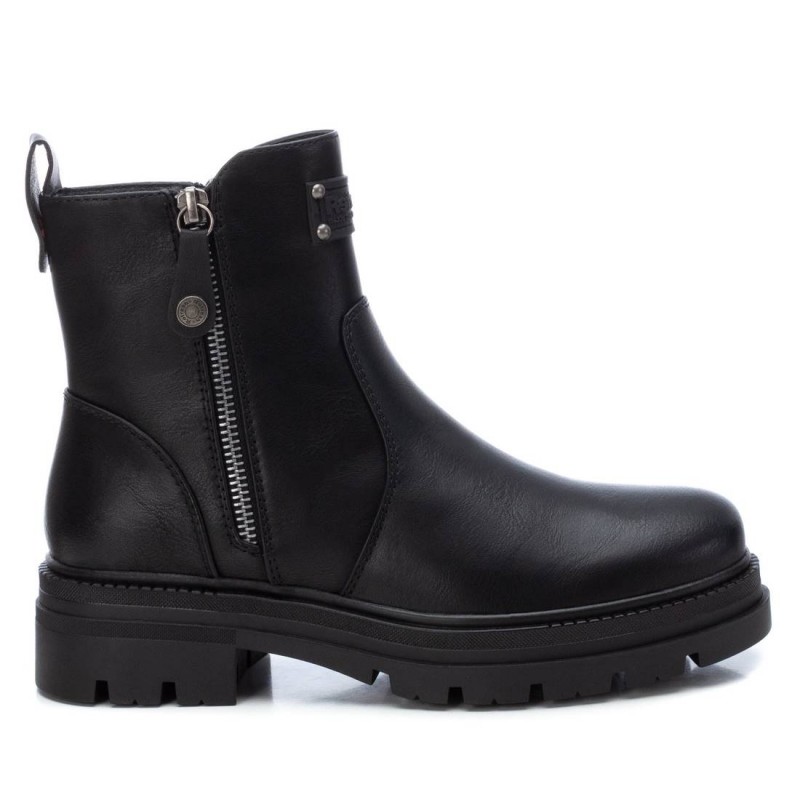 Botín de mujer, de la marca Refresh. Fabricado en material que imita la piel. Cierre mediante cremallera lateral. Tirador trasero para facilitar la puesta. Cremallera lateral decorativa. Piso grueso con suelta dentada de goma antideslizante. Este modelo ha obtenido el certificado vegano por la organización mundial PETA (Organización de los derechos de los animales).