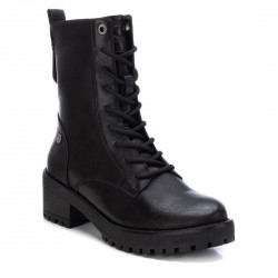 Botín estilo militar de mujer, de la marca Refresh. Fabricado en material que imita la piel. Cierre mediante cremallera lateral y cordones para un buen ajuste. Tirador trasero para facilitar la puesta. Cómodo tacón ancho de 5 cm con suela dentada de goma antideslizante. Este modelo ha obtenido el certificado vegano por la organización mundial PETA (Organización de los derechos de los animales).