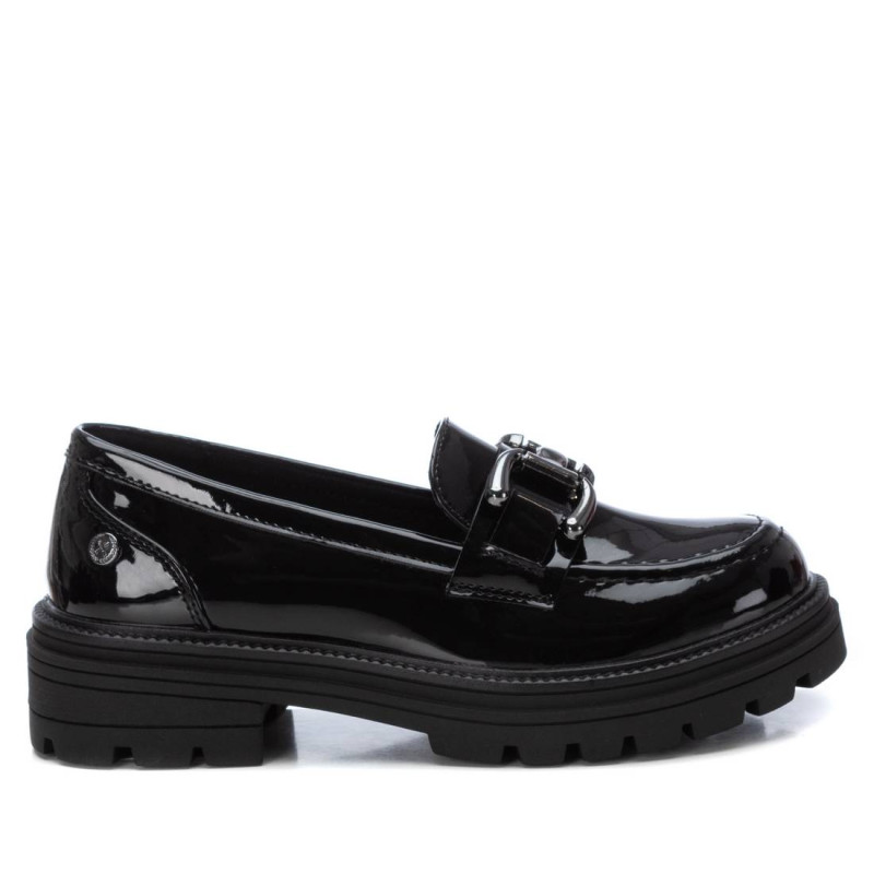 Mocasín de niña, de la marca Xti Kids. Fabricada en charol con detalle metálico decorativo. Cómoda planta y suela de goma antideslizante. Este modelo ha obtenido el certificado vegano por la organización mundial PETA (Organización de los derechos de los animales).