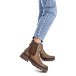 Botín de mujer, de la marca Refresh. Fabricado en un material que imita la piel. Cierre cremallera lateral. Botín tipo Chelsea con elástico lateral y tirador trasero para facilitar la puesta. Suela de volumen antideslizante. Este modelo ha obtenido el certificado vegano por la organización mundial PETA (Organización de los derechos de los animales).