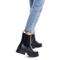 Botín de mujer, de la marca Refresh. Fabricado en un material que imita la piel. Botín estilo Chelsea. Cierre lateral con cremallera y elástico para mejor la sujeción. Suela volumen antideslizante. Este modelo ha obtenido el certificado vegano por la organización mundial PETA (Organización de los derechos de los animales).