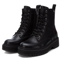 Botín militar de mujer, de la marca Xti. Fabricado en material que imita la piel. Cierre mediante cremallera lateral y cordoneras para un buen ajuste. Tirador trasero para facilitar la puesta. Suela track de goma antideslizante. Modelo en tendencia de esta temporada. Este modelo ha obtenido el certificado vegano por la organización mundial PETA (Organización de los derechos de los animales).