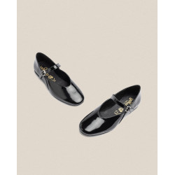 El zapato plano ARI 001 en charol negro y estilo bailarina, diseñado para quienes buscan comodidad sin sacrificar el estilo. Presenta una punta redonda clásica, que añade un toque característico al acabado. Para asegurar un ajuste perfecto, cuenta con un cierre de hebilla que no solo es funcional sino también un detalle decorativo que complementa el diseño del zapato. Elaborado en España de manera artesanal, con tintes vegetales respetuosos con el medio ambiente.