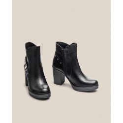 El botín de tacón PILSEN 011 en negro es perfecto si quieres un look con actitud. Tiene una hebilla plateada que aporta carácter y personalidad, además de un cierre de cremallera que facilita el calce. Con un tacón de 6cm, este botín combina estilo y altura, ideal para destacar en cualquier ocasión. Fabricado en España de manera artesanal, material piel y uso de tintes vegetales respetuosos con el medio ambiente.