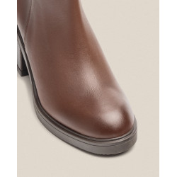 El botín de tacón MIRE 002 en marrón es un zapato elegante pero sencillo, perfecto para cualquier ocasión. Con un diseño minimalista y un tacón cómodo, es ideal para combinar con cualquier look. La puntera y el acabado le dan un toque moderno, mientras que el cierre lateral con cremallera lo hace práctico y fácil de usar. Es el botín perfecto si buscas estilo sin complicaciones. Elaborado en España de manera artesanal, material piel y tintes vegetales respetuosos con el medio ambiente.
