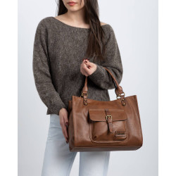 Bolso de mujer de la marca Refresh. Fabricado en material que imita la piel, suave y resistente. Su diseño incluye bolsillos interiores con forro y un bolsillo exterior con cierre metálico. Práctico y versátil, con asa corta y bandolera regulable. Medidas: 26 x 35 x 12 cm. Este modelo ha obtenido el certificado vegano por la organización mundial PETA (Organización de los derechos de los animales).