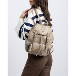 Mochila para mujer de la marca Refresh. Fabricada en textil con cierre mediante botón y cordones. Su solapa y tachas decorando varias de sus partes le aportan un diseño y carácter impecable para combinar con todos tus looks. Medidas: 36 x 27 x 9 cm. Este modelo ha obtenido el certificado vegano por la organización mundial PETA (Organización de los derechos de los animales).