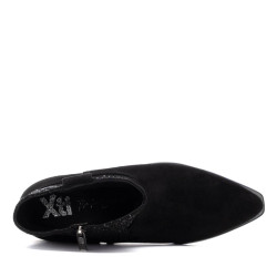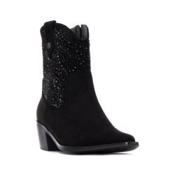 Botín de mujer, de la marca Xti. Fabricado en antelina, con un toque de brillos en la parte superior, que le da un aire sofisticado y llamativo. Su diseño de estilo cowboy presenta una punta ligeramente alargada y detalles que evocan ese estilo tan característico. Con un tacón bajo de 7 cm, proporciona comodidad y estabilidad, ideal para el día a día sin perder el toque de elegancia. Perfecto para combinar con jeans, faldas o vestidos, y con la suela antideslizante que asegura un paso firme en cualquier superficie. Plantilla extraíble.